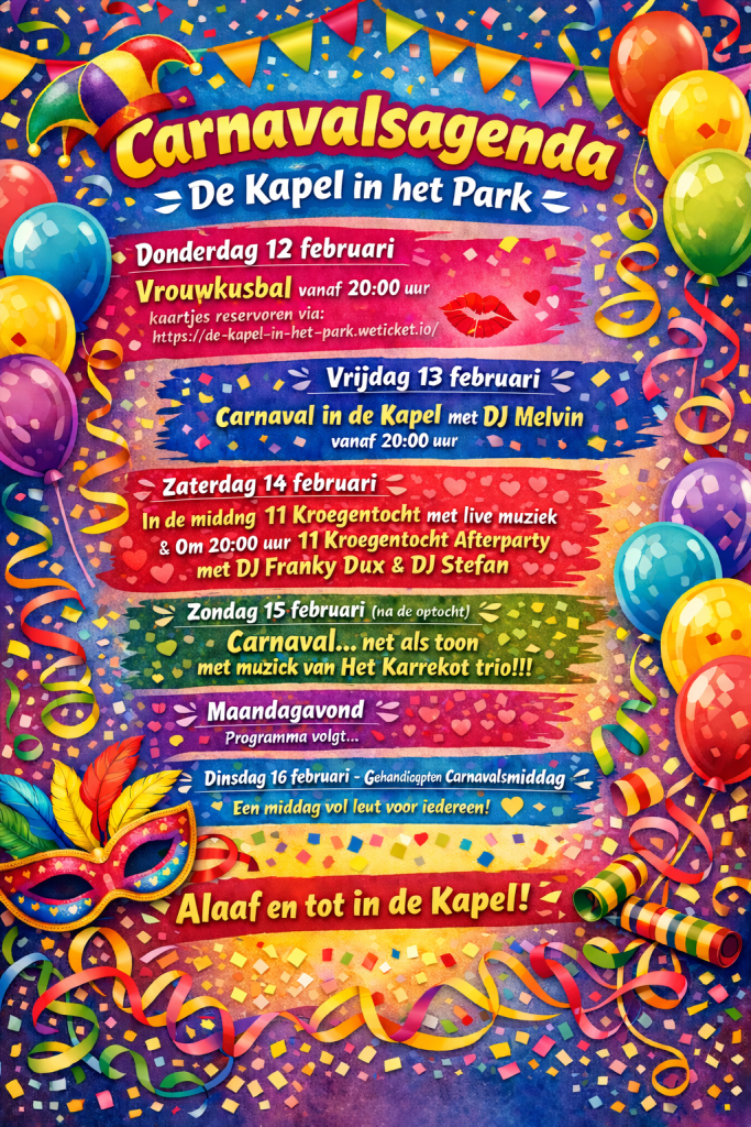 Een overzicht van alle geplande activiteiten en evenementen in de Kapel in het Park